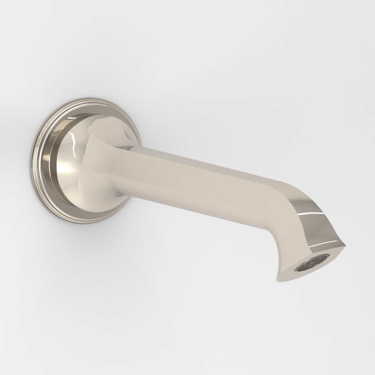 Villa Wall Mounted Spout is gracefully crafted with slender defining classic lines, mirror-like facets around its body, and a delicately tapering beak.